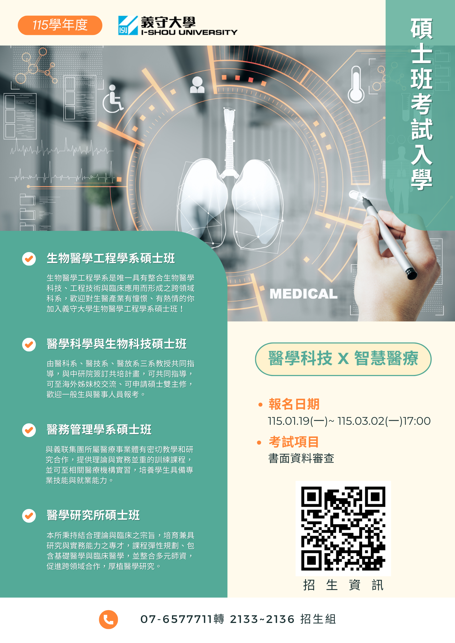 歡迎報考醫學科學與生物科技學系碩士班考試入學